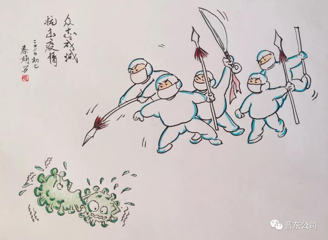 特能集團(tuán)晉東公司所屬包裝材料公司職工、退伍軍人周治國(guó)自費(fèi)購(gòu)買(mǎi)100公斤消毒液和100個(gè)口罩,免費(fèi)送給周?chē)用袢罕姡艿酱蠹液迷u(píng)點(diǎn)贊!后續(xù)購(gòu)買(mǎi)的300個(gè)口罩正在運(yùn)輸中。晉東青年女兵工蔡娟、吳瓊精心創(chuàng)作“眾志成城、共抗疫情”系列主題漫畫(huà),請(qǐng)微觀。