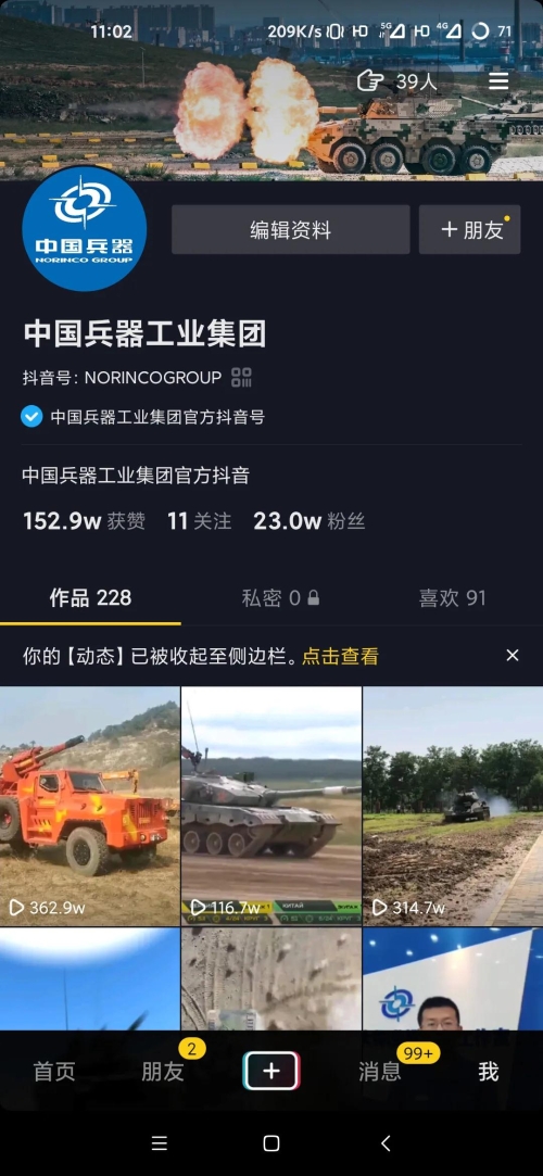 近日 中國兵器工業(yè)集團(tuán)抖音號 喜獲殊榮 成為2020年政務(wù)抖音號 優(yōu)秀創(chuàng)作者 2020年1月 集團(tuán)公司抖音號正式開通 近1年來,短視頻宣傳取得良好效果 截至目前,共發(fā)布視頻228個 總粉絲數(shù)23萬,獲贊152萬 播放總量已超8000萬 |