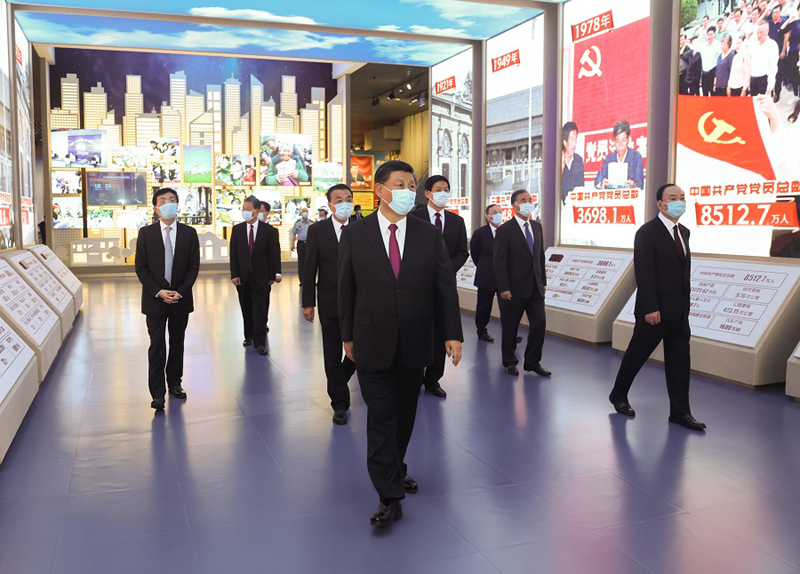 新近落成的中國共產(chǎn)黨歷史展覽館巍然矗立,氣勢恢宏。下午3時20分許,習(xí)近平等黨和國家領(lǐng)導(dǎo)同志來到這里,步入展廳參觀展覽。展覽以“不忘初心、牢記使命”為主題,精心設(shè)計了“建立中國共產(chǎn)黨 奪取新民主主義革命偉大勝利”、“成立中華人民共和國 進行社會主義革命和建設(shè)”、“實行改革開放 開創(chuàng)和發(fā)展中國特色社會主義”、“推進中國特色社會主義進入新時代 全面建成小康社會 開啟全面建設(shè)社會主義現(xiàn)代化國家新(人民日報)征程”4個部分,通過2600余幅圖片、3500多件套文物實物,第一次全方位、全過程、全景式、史詩般展現(xiàn)中國共產(chǎn)黨波瀾壯闊的百年歷程,濃墨重彩地反映黨的不懈奮斗史、不怕犧牲史、理論探索史、為民造福史、自身建設(shè)史,使人們深刻認(rèn)識到紅色政權(quán)來之不易、新中國來之不易、中國特色社會主義來之不易,深刻認(rèn)識到中國共產(chǎn)黨為什么能、馬克思主義為什么行、中國特色社會主義為什么好。