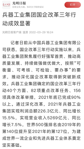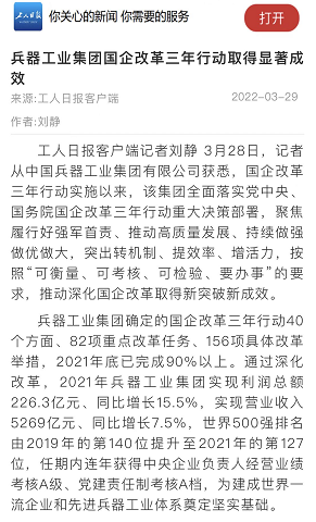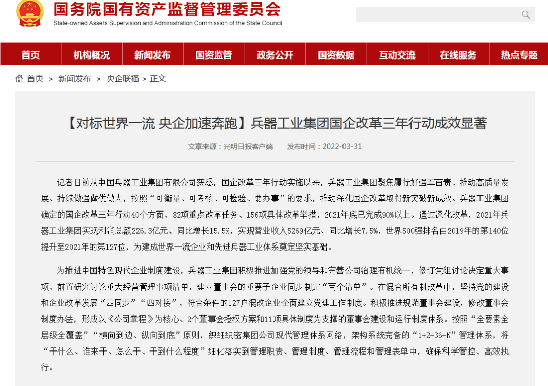 兵器工業(yè)集團(tuán)國企改革三年行動工作成效引發(fā)廣泛關(guān)注丨國企改革看兵器 |