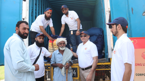 考慮到災(zāi)情期間交通不便,為了確保運(yùn)輸時效,項目組成立了由21人組成的運(yùn)輸保障志愿小分隊。9月6日,志愿小分隊連夜驅(qū)車400公里趕往災(zāi)區(qū),親手將救災(zāi)物品免費(fèi)發(fā)放到當(dāng)?shù)刎毨転?zāi)民眾手中,極大鼓舞了當(dāng)?shù)孛癖娍箵艉闉?zāi)的士氣?!盁o論遇到什么困難,中國總是第一個愿意幫助巴基斯坦的國家。感謝中國公司給予我們的支持與幫助,中巴友誼萬歲!”當(dāng)?shù)鼐用窦娂姳硎靖兄x。
